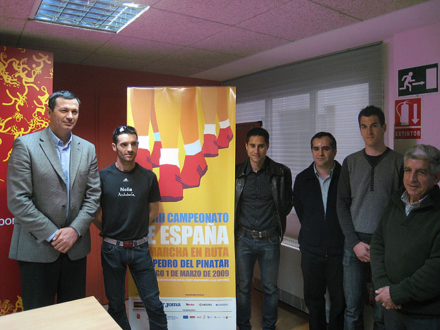 El director general de Deportes, Antonio Peñalver, presentó hoy, junto con el concejal de Deportes del Ayuntamiento de San Pedro del Pinatar, José Lorenzo Martínez, el presidente de la Federación Murciana de Atletismo, Rosendo Berengüí, y los atletas Francisco Javier ‘Paquillo’ Fernández, Juan Manuel Molina y Benjamín Sánchez el LXXVIII Campeonato de España de Marcha en Ruta, que se disputará en San Pedro del Pinatar el próximo domingo, 1 de marzo.