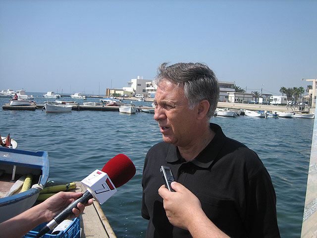 Francisco Moreno acompañó a bordo de una embarcación a los nadadores del Club Natación Carthago, participantes en la travesía entre Lo Pagán e Islas Menores, de 19 kilómetros, organizada por la Fundación Cluster con la finalidad de sensibilizar a los ciudadanos sobre la importancia de este espacio singular.
