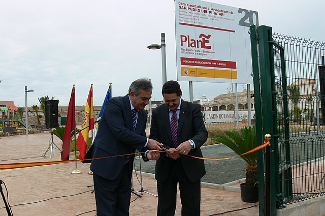 Murcia, 18 de febrero de 2010.- El delegado del Gobierno en la Región de Murcia, Rafael González Tovar, y el alcalde de San Pedro del Pinatar, José María García, han inaugurado esta mañana el Jardín Botánico del municipio, conocido como el Jardín de Las Salinas, realizado con cargo al Fondo Estatal para el Empleo y la Sostenibilidad Local (Plan E). En este proyecto se ha realizado una inversión de 812.252 euros y han sido creados 50 empleos (42 integrados, y 8 de nueva creación).