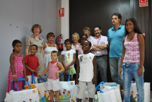 "El pueblo Saharaui vive una situación traumática ya que desde hace 35 años, arrastras un proceso de descolonización que no tiene visos de resolverse", destacó el Delegado del Pueblo saharaui en Cartagena, José Ramón Jiménez. Junto a él, Jane Cronin, presidenta de la Asociación de Angloparlantes de San Pedro del Pinatar (ADAPT), que ha organizado a lo largo del año actividades para recaudar dinero para ofrecerlo al pueblo saharaui, afirmó "los angloparlantes desconocíamos las claves de este conflicto, la concejalía de Participación Ciudadana, tras su viaje a Tinduf nos pidió colaboración para ayudar a los campamentos y pusimos en marcha varias ideas como bingos, la noche de flamenco de Raquel Peña en la que recaudamos 1.200 euros y la iniciativa "1 tonelada de monedas" con la que hemos recaudado 500 euros en monedas pequeñas que han aportado los socios de ADAPT". En total, Cronin hizo entrega de un cheque por valor de 2.200 euros a la Asociación "Vacaciones en Paz" y entregó regalos a los siete niños que en breve regresaran al campamento saharaui. Por último el Acalde de San Pedro del Pinatar, agradeció el esfuerzo de las asociaciones y las familias y afirmó, "los niños son los mejores embajadores de esta causa que por ser justa, siempre contará con el apoyo de mi Equipo de Gobierno, de hecho, tras conocer in situ las necesidades del Pueblo Saharaui, implicamos a la ciudadanía para que colaborasen, la respuesta ha sido excelente, este año a pesar de las dificultades que atravesamos, las familias pinatarenses han acogido más niños que en otras ocasiones".