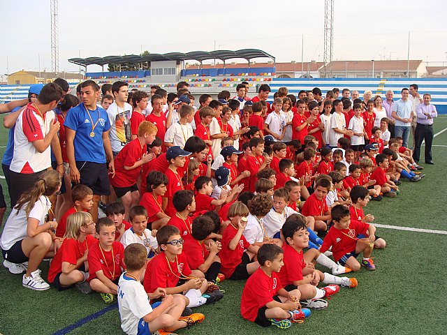 La Escuela de Fútbol Base Pinatar celebró el pasado sábado la clausura del curso con diferentes actividades en las que participaron la mayoría de los 300 alumnos con los que cuenta el club, en 15 equipos pertenecientes a las categorías chupete, pre-benjamín, benjamín, alevín, infantil, cadete y juvenil.