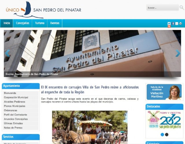 La alcaldesa de San Pedro del Pinatar, Visitación Martínez, y el concejal de Nuevas Tecnologías, Álvaro Tárraga, han presentado hoy el nuevo portal web municipal, que mantiene el dominio www.sanpedrodelpinatar.es, pero amplía los servicios y mejora la imagen y herramientas de la página.