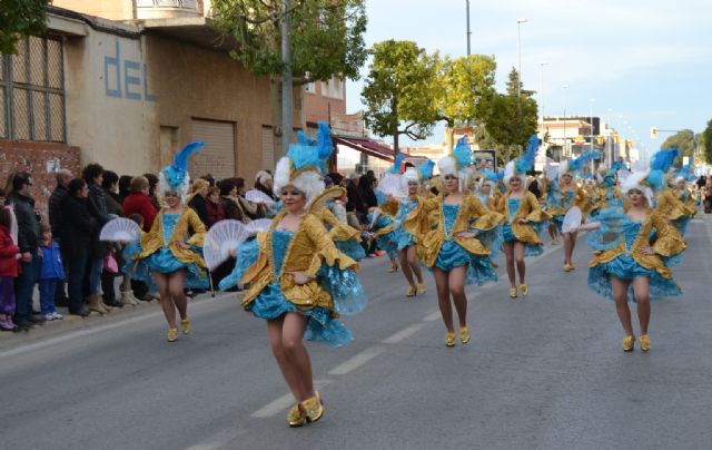 Las chicas de la comparsa "La Amistad – Embrujo" abrían el desfile, seguidas de los arlequines de "Los Pocos… a más tocamos" y la comparsa "La Nueva Ola del Mar Menor", que hizo honor a su nombre con una llamativa indumentaria azul.