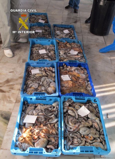 Agentes del Servicio de Protección de la Naturaleza (SEPRONA) de la Guardia Civil de la Región de Murcia, en colaboración con inspectores del Servicio de Pesca de la Comunidad Autónoma, han procedido al decomiso, en las inmediaciones del puerto pesquero de San Pedro del Pinatar, de un total de 113 kilos de pulpo ("Octopus vulgaris") con un peso medio inferior a 1 kilo, el mínimo para su captura y comercialización, según la normativa en la materia.