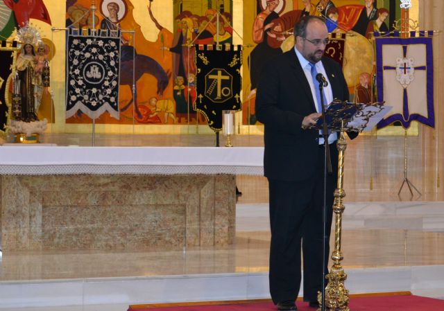 Posteriormente, la comitiva se ha trasladado a la Iglesia de la Santísima Trinidad, donde Enrique Centeno ha pregonado la Semana Santa de San Pedro del Pinatar, repasando los momentos claves de los diferentes desfiles procesionales, resaltando también la belleza de sus pasos, así como su solemnidad y hondo significado.