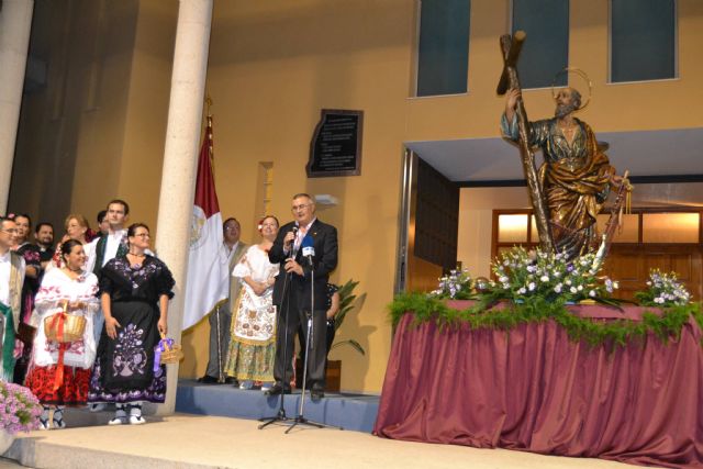 Los reinados de la Tercera Edad, Infantil y Juvenil, miembros de la Corporación Municipal, y la alcaldesa de San Pedro del Pinatar, Visitación Martínez, cerraban el desfile seguidos por la banda municipal Unión Musical, hasta llegar a los pies del Patrón, que presidía el acto desde la puerta de la iglesia de la Santísima Trinidad.
