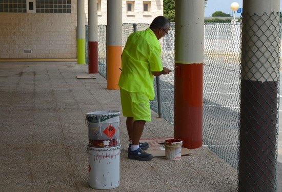 Los operarios del Almacén Municipal, en coordinación con la concejalía de Educación, han llevado a cabo más de 175 actuaciones de pintura, jardinería, albañilería, cristalería, señalización, etc. en los colegios e institutos del municipio y su entorno