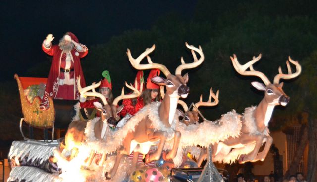 Papá Noel recorrió ayer, lunes 23 de diciembre, las calles de San Pedro del Pinatar para felicitar la Navidad a los pinatarenses, hasta llegar a las puertas del Ayuntamiento, en la plaza Luis Molina, donde recogió las cartas de cientos de niños.