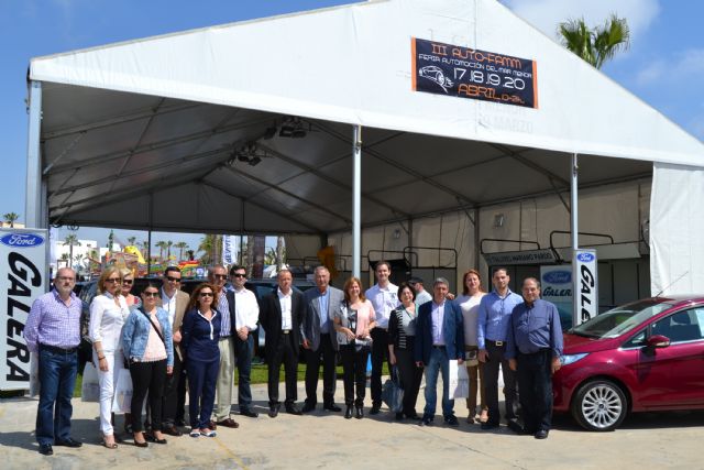 La alcaldesa de San Pedro del Pinatar, Visitación Martínez, el concejal de Comercio, José Guillermo García, y la directora general de Comercio y Artesanía, María Dolores Alarcón, han visitado hoy la III Feria de Automoción del Mar Menor, AUTO-FAMM, en la que participan cuatro concesionarios y donde se exponen más de 200 vehículos.