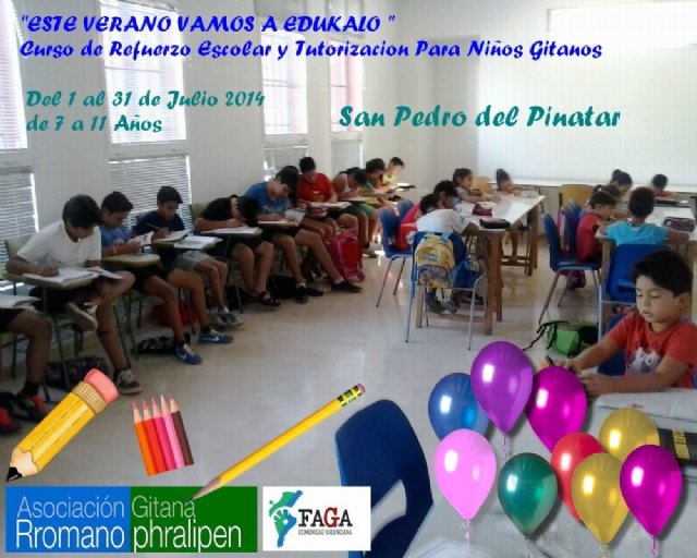 La Federación FAGA y una de sus Asociaciones Federadas en San Pedro del Pinatar Rromano Phralipem, llevarán del día 1 al 31 de Julio del 2014 una escuela de Verano para Niños Gitanos