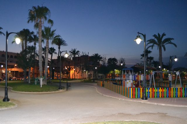 La concejalía de Industria ha iniciado un plan de renovación del alumbrado púbico con el cambio de las farolas del parque del Mar Reyes de España de Lo Pagán por luminarias LED.
