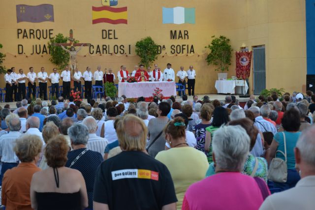 El parque del Mar, ubicado junto a la explanada de Lo Pagán, albergó ayer la misa en Honor al Cristo del Mar Menor, que se celebra desde hace más de una década, el penúltimo domingo de agosto.