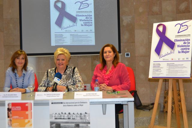 La concejal de Bienestar Social, Francisca Pelegrín, junto a la directora del Centro de Servicios Sociales, Marisa García, y la coordinadora del programa de Violencia de Género local, María de los Ángeles Rosique, han presentado hoy la programación que se desarrollará en el municipio con motivo del 25 de noviembre.