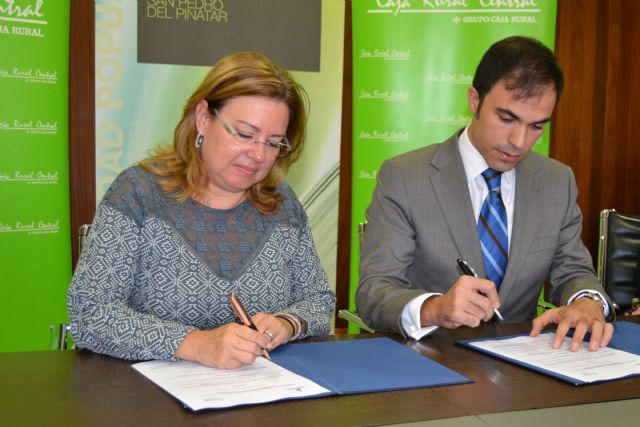 La alcaldesa de San Pedro del Pinatar, Visitación Martínez, y el director de Caja Rural Central en San Pedro del Pinatar, Laureano Pérez, han suscrito hoy un convenio de colaboración para el desarrollo de la oferta formativa de la Universidad Popular en el curso 2015-2016.