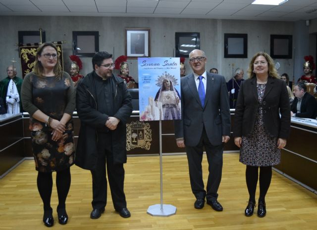 También presentó el cartel anunciador de la Semana Santa, una imagen de la Santísima Virgen de los Dolores, "en la que debemos fijarnos en el resplandor de sus lágrimas que anuncian la luz y la esperanza", señaló Visedo. Además, aprovechó el acto para anunciar que Antonio Tárraga Zapata será el encargado de pregonar la Semana Santa pinatarense y que este año, se ha elegido a Luis Delgado Sánchez como Procesionista del Año.