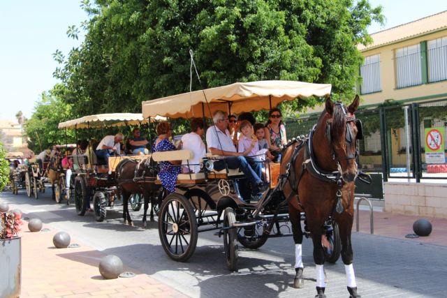 Este encuentro ha reunido en el municipio pinatarense más de una treintena de carruajes, calesas, y carros, engalanados para la ocasión y con sus ocupantes ataviados con trajes de romeros, que han recorrido las calles del municipio, acompañados también por medio centenar de jinetes y amazonas que cerraban el desfile.