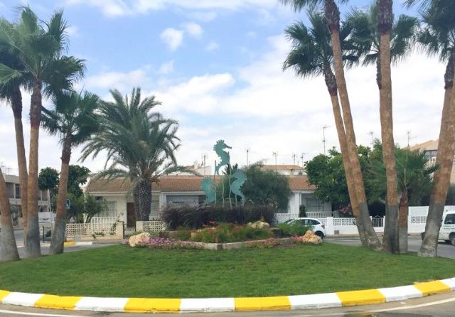 La rotonda de la Avenida del Puerto ha sido renovada recientemente por la concejalía de Servicios Comunitarios, donde se ha instalado una escultura de acero que reproduce el perfil de tres caballitos de mar, además de elementos de jardinería decorativos.