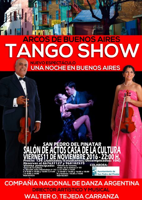 La Casa de la Cultura de San Pedro del Pinatar acoge mañana, viernes 11 de noviembre, a partir de las 22:00 horas, el espectáculo "Una Noche en Buenos aires".