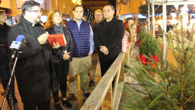 Posteriormente, el párroco de la iglesia de San Pedro Apóstol, Roberto Burgos realizó una oración frente a la escena de "El Nacimiento" y un recorrido por el Belén, instalado en la plaza de la Constitución, guiados por el gerente de Belenes Horadada, empresa que se encarga desde hace años de la instalación del Belén Municipal, que actualmente cuenta con unas dimensiones de seis metros de ancho por 18 de longitud y en el que se recrean diversos pasajes bíblicos y del nacimiento de Cristo, escenas costumbristas de pastores y campesinos y alegorías a edificaciones de la zona.