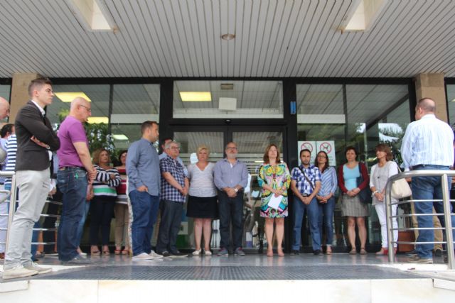 Miembros de la Corporación Municipal de San Pedro del Pinatar junto a trabajadores y vecinos han guardado hoy a las 12:00 horas un minuto de silencio en señal de condolencia y repulsa al trágico suceso acaecido en Molina de Segura, donde una mujer ha sido asesinada por un compañero de trabajo en presunto caso de violencia machista.