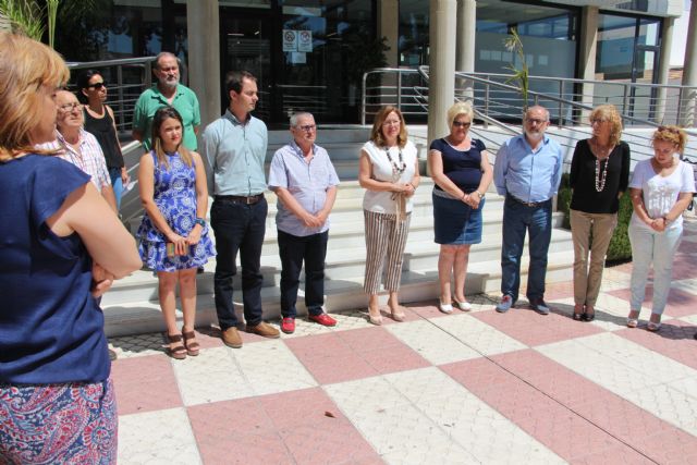 Miembros de la Corporación Municipal de San Pedro del Pinatar junto a trabajadores y vecinos han guardado hoy a las 12:00 horas un minuto de silencio por la víctimas del atentado perpetrado en Londres, el pasado sábado.