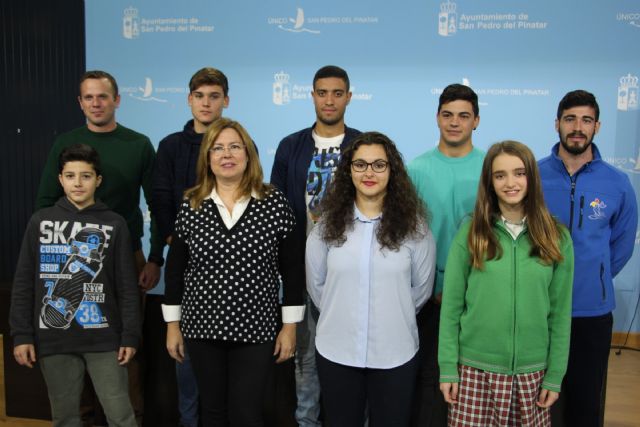 La alcaldesa de San Pedro del Pinatar, Visitación Martínez, acompañada por el concejal de Deportes, Daniel Pérez, ha entregado diez subvenciones individuales, por un valor global de 5.000 euros a deportistas pinatarenses, que han destacado en diferentes disciplinas a lo largo del año.