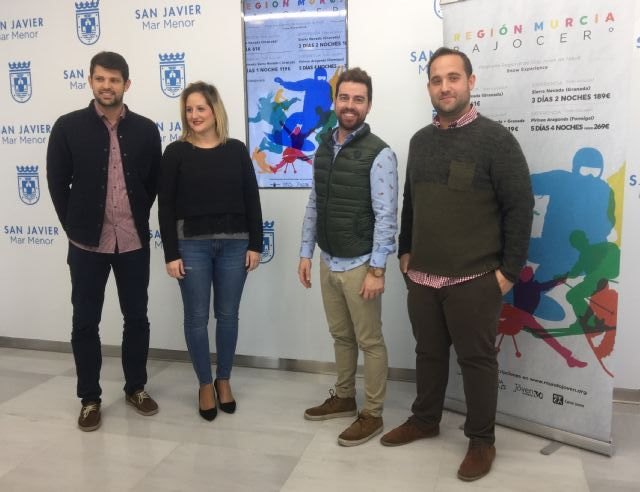 El director general de Juventud, Francisco Sánchez, presentó hoy en San Javier el calendario de viajes que se realizarán hasta mediados de marzo y destacó la importancia de sumar fuerzas para ofrecer cuantas más alternativas de ocio para la juventud. "Es una ocasión perfecta para practicar deporte, pero también una oportunidad de conocer a gente joven con la que compartir experiencias y disfrutar de las actividades en grupo y en contacto con la naturaleza", afirmó Sánchez que estuvo acompañado por los ediles de Juventud de San Pedro del Pinatar, San Javier y Los Alcázares, Javier Castejón, Estíbaliz Masegosa y Nicolás Ruiz.