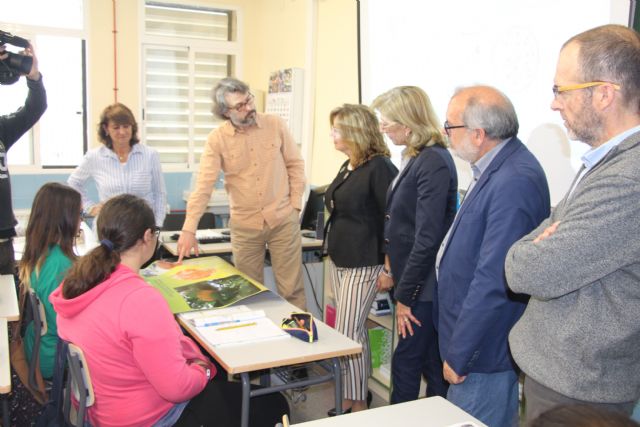 También en este aula, la alcaldesa pudo trasladar su enhorabuena a Lucía Sánchez, alumna que se encuentra entre los 19 estudiantes de la Región que han conseguido una de las Becas de inmersión de la Fundación Amancio Ortega, por lo que cursará 1° de Bachillerato en Estados Unidos.