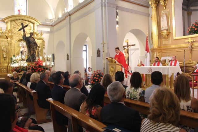 Así, fieles, vecinos, las reinas de las fiestas, autoridades locales, la banda de Cornetas y tambores de la Hermandad del Apóstol San Pedro y la banda de música municipal "Unión Musical" acompañaron ayer, en procesión por las calles más céntricas del municipio, a la imagen de San Pedro Apóstol. Cerraban la procesión la junta directiva de la Hermandad, la alcaldesa del municipio, Visitación Martínez, y el consejero de Fomento, Patricio Valverde, acompañados por miembros de la Corporación Municipal y autoridades civiles y militares.