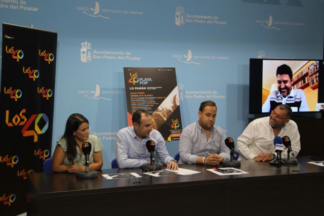 La presentación de LOS40 Playa Pop ha tenido lugar en el Ayuntamiento pinatarense, y ha corrido a cargo de Tony Aguilar, que intervino por videoconferencia, el Concejal de Festejos Javier Castejón, el Director de Radio Cartagena-Cadena SER, Antonio Rosa, y el Coordinador de Cadenas Musicales de Prisa Radio en la Región de Murcia, Joaquín Guillén.