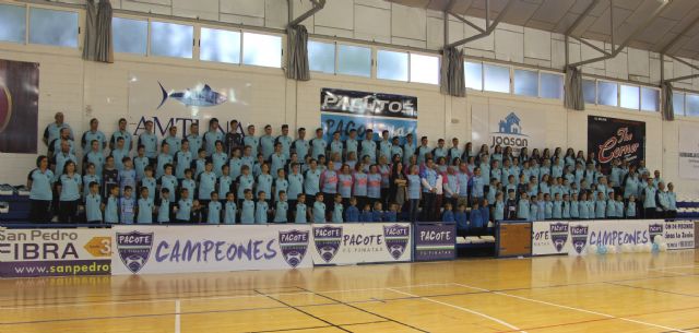 El Pacote FS cuenta este año con once equipos en San Pedro del Pinatar que se presentaron arropados por decenas de familiares y aficionados. El club suma siete equipos en San Javier y en total, más de 270 niños, se forman en la gran familia Pacote que este año, como novedad, cuenta entre sus filas con el equipo femenino "Flamenco Rosa".