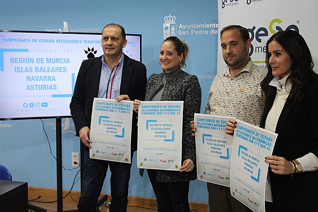 Ya se ha presentado en San Pedro del Pinatar la primera fase de los Campeonatos de España de Selecciones Autonómicas Sub-17 y Sub-15 de fútbol femenino que se celebrarán en San Pedro y San Javier del 14 al 16 de diciembre. Al acto de presentación han acudido Javier Castejón, Concejal del Ayuntamiento de San Pedro, Estíbaliz Masegosa, concejala del Ayuntamiento de San Javier, y Jesús Rosagro, Director Deportivo de la Federación de Fútbol de la Región de Murcia.