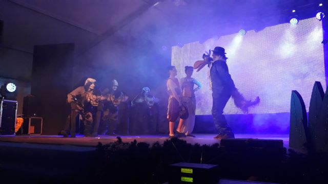 Así, sobre el escenario del Recinto Ferial, el numeroso público familiar disfrutó en esta ocasión de un musical basado en la película "El Rey león" y en el que aparecieron distintos animales como hienas, cabras, leones, aves, etc.