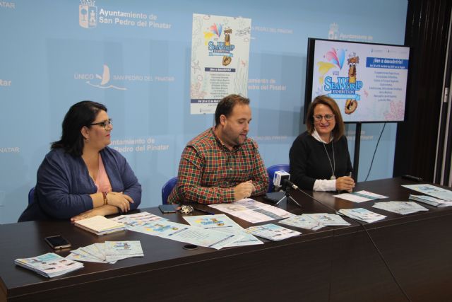 El concejal de Ferias, Festejos y Deportes, Javier Castejón; la concejal de Turismo y Cultura, Silvia Egea, y la edil de Comercio, Lidia Sánchez, han presentado hoy la VIII Sea World Exhibition, un evento dedicado al mar y su entorno que se celebra del 18 al 21 de abril en San Pedro del Pinatar.