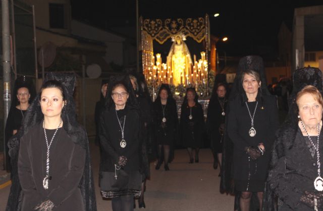 El cofradía de la Virgen de los Dolores, una de las más longevas de la Semana Santa pinatarense, presidió ayer la primera de las procesiones solemnes de este año, acompañada también por la banda de cornetas y tambores de San Juan y la cofradía del Santo Grial.