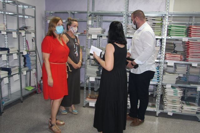 La alcaldesa de San Pedro del Pinatar, Visitación Martínez, visitó el Banco de libros municipal junto a la presidente de FAPA Pinatar, María Dolores Nieto, y los concejales de Educación y Participación Ciudadana, Carmen María López y Zoilo Ballester.