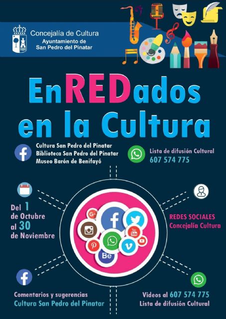 También online, la concejalía de Cultura ha propuesto la campaña "Enredados en la Cultura" que se desarrollará del 1 de octubre al 30 de noviembre con el objetivo de fomentar la difusión cultural y la participación de los ciudadanos a través de las Redes Sociales.
