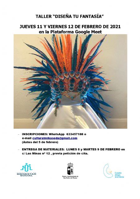 La Concejalía de Bienestar Social del Ayuntamiento de San Pedro del Pinatar en colaboración con la asociación Mikaseda, organiza el taller "Diseña tu fantasía", cuyo objetivo es enseñar a todos los que decidan participar, a diseñar y realizar un espectacular gorro de carnaval.