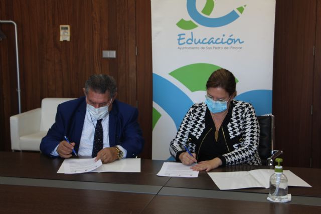 La alcaldesa de San Pedro del Pinatar, Visitación Martínez, y el presidente de la Federación Autonómica de Asociaciones Gitanas (FAGA) en la Comunidad Valenciana, Ramón Fernández Fernández, han suscrito hoy un convenio de colaboración para el desarrollo del programa de apoyo educativo Edukalo, que se desarrolla en el municipio por noveno curso consecutivo.