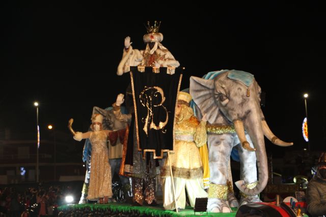 Melchor, Gaspar y Baltasar llegaron, precedidos por un cortejo de baile, música y espectáculo, en sus imponentes carrozas, para después recorrer el mismo trayecto a pie y saludar, algo más de cerca a los pequeños pinatarenses.
