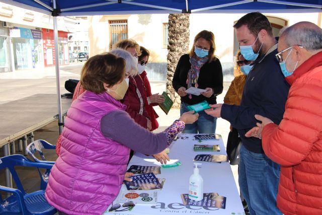 La plaza de la Constitución ha acogido hoy una mesa informativa de la junta local de la Asociación Española Contra el Cáncer que ha difundido la campaña “El otro test”, que tiene como objetivo informar sobre la importancia de la detección precoz de esta enfermedad, a través de una sencilla prueba.