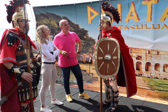 El concejal de Deportes de San Pedro del Pinatar, Pedro Antonio Vivancos, y la presidenta de la Federación de Atletismo de la Región de Murcia, Pruden Guerrero, han presentado hoy en el Centro de Actividades Náuticas, junto a representantes del Tercio Romano Hermenegildo Fresneda, la octava edición de la carrera popular Pinatarius Obstaculum Cursus, que se celebrará el próximo 25 de junio en el marco de las fiestas patronales con la temática de la Antigua Roma y sus competiciones como referencia.