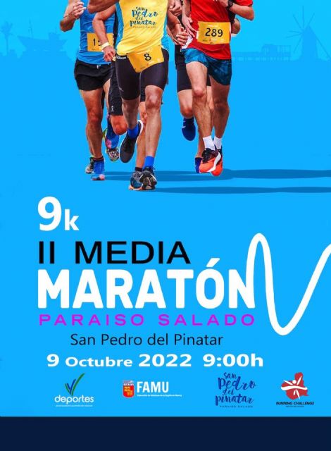 La Concejalía de Deportes del Excmo. Ayuntamiento de San Pedro del Pinatar, en colaboración con la Federación de Atletismo de la Región de Murcia, organiza la II Media Maratón y 9K Paraíso Salado