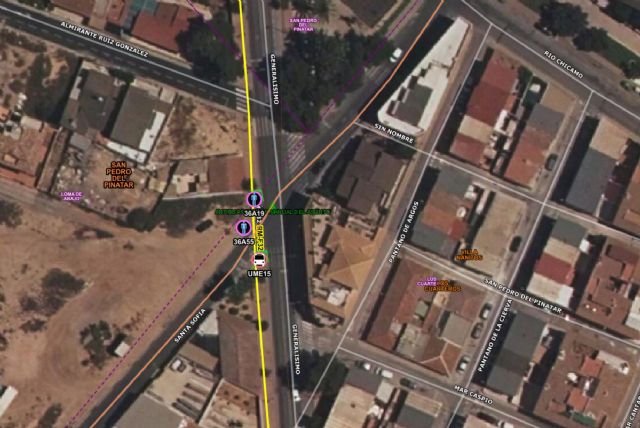 Servicios de emergencia han atendido y traslado a un herido de tráfico al chocar un vehículo y una bicicleta en la Calle Santa Sofía, San Pedro del Pinatar.