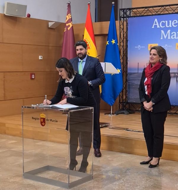 El protocolo ha sido suscrito por el presidente de la Región, Fernando López Miras; la vicepresidenta tercera del Gobierno central y ministra para la Transición Ecológica y el Reto Demográfico, Teresa Ribera; y los alcaldes de Murcia, Cartagena, Torre-Pacheco, Mazarrón, San Javier, San Pedro del Pinatar, La Unión, Los Alcázares, Fuente Álamo de Murcia y Alhama de Murcia.