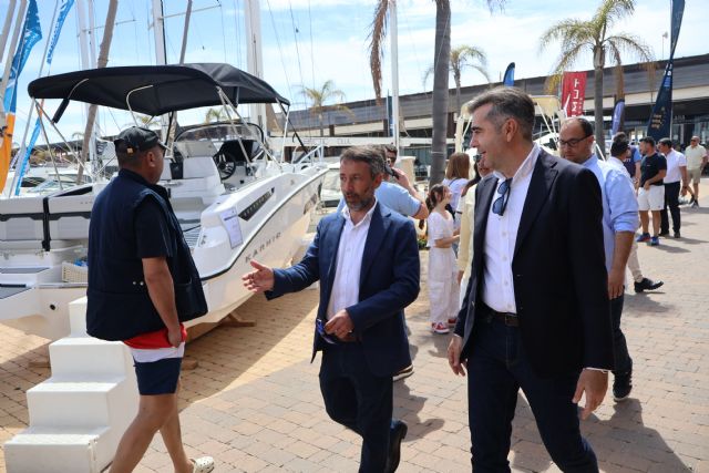 El alcalde de San Pedro del Pinatar, Pedro Javier Sánchez, acompañado del gerente del puerto deportivo Marina de Las Salinas, Domingo Macanás, ha visitado hoy esta feria náutica en la que se exponen todo tipo de embarcaciones, clubes de navegación, charter, motores, ropa y complementos náuticos.