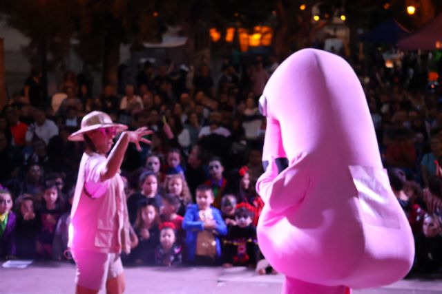 A las 18:00 horas fue el turno de Mingo, mascota del municipio y Explo, que bailaron y jugaron con los más pequeños, ataviados de fantasmas, esqueletos, brujas y otros terroríficos disfraces. Posteriormente continuó la fiesta familiar con un divertido cantajuegos en el que no faltaron personajes como La Familia Adams, las momias de Tadeo Jones o Los Cazafantasmas, entre otros. Además, los asistentes disfrutaron de palomitas y algodón de azúcar.