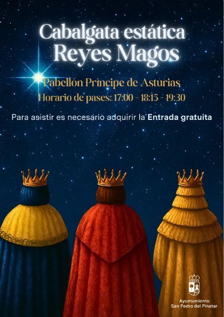 La tradicional Cabalgata de Reyes Magos, que cada año se celebra en la tarde del 5 de enero, desde la Lonja Pesquera de Lo Pagán hasta el Casino de San Pedro del Pinatar, se realizará este año de manera estática en el pabellón polideportivo Príncipe de Asturias, debido a las previsiones meteorológicas adversas.