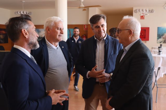 El alcalde de San Pedro del Pinatar, Pedro Javier Sánchez, el director general de Puerto de la CARM, Pablo Marín, el presidente del Club Náutico, Diego José López, el presidente de la Federación de Vela de la Región, Arturo García