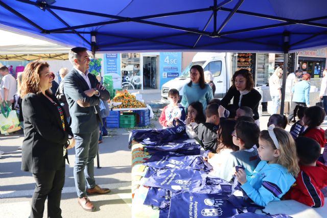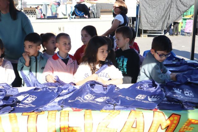 Los alumnos de la Escuela Infantil Nº1 se han convertido hoy en pequeños educadores medioambientales en una carpa instalada en el mercado semanal, en la que han repartido bolsas reutilizables cedidas por el Ayuntamiento de San Pedro del Pinatar.
